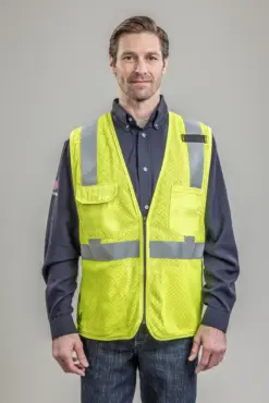 This work vest will maintain your Flame Resistance on the job while offering Anti-Stat technology, added storage and Hi-Visibility. The perfect addition for team apparel.